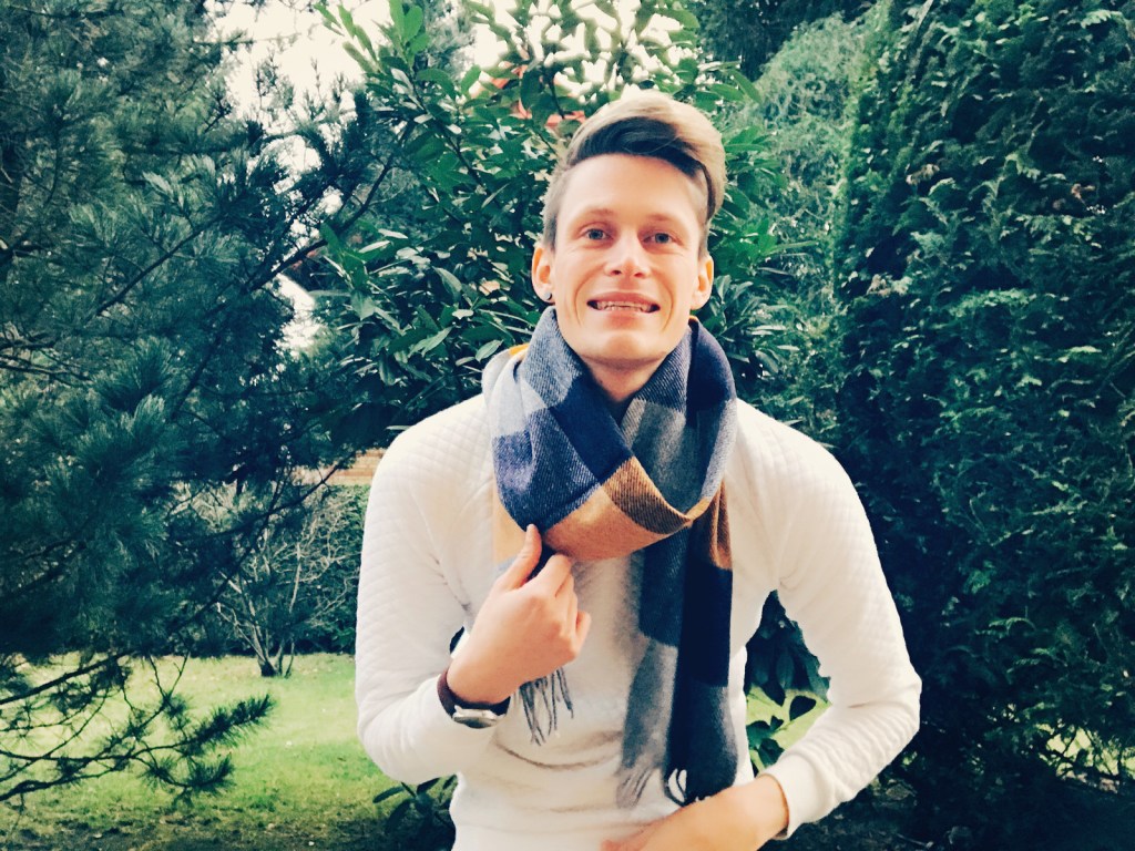 Der tolle grau-, blau- und orange-gemusterte Herren Woll-Schal „Bob“ (59 EUR) lässt sich angenehm tragen. Die Zusammensetzung aus 90% Wolle und 10% Kaschmir macht ihn kuschlig weich. Durch seine perfekte Zwischengröße ist er praktisch und stylisch zu gleich. So lässt er sich an sehr kalten Tagen gut unter dem Mantel aber auch an einem kühlen Frühlingstag als Accessoire zum Pullover tragen und hält somit nicht nur warm, sondern wertet jeden Casual Winterlook optisch auf.